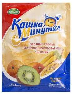 Хлопья овсяные, сахар, кусочки сушеных фруктов, соль, заменитель сухих сливок сухая молочная сыворотка, рафинированное кокосовое масло, идентичный натуральному ароматизатор "Экзотик". Не содержит ГМО.