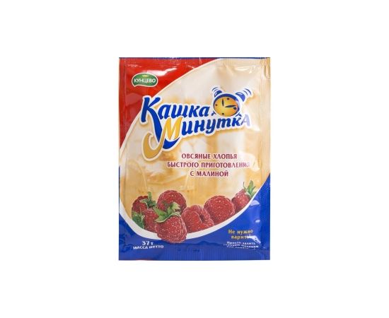 Хлопья овсяные, сахар, кусочки сушеной малины, соль, заменитель сливок (сухая молочная сыворотка, рафинированное кокосовое масло), идентичный натуральному ароматизатор "Малина".
