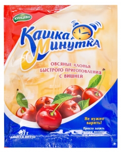 Хлопья овсяные, сахар, кусочки сушеных вишни, соль, заменить сухих сливок (сухая молочная сыворотка, рафинированное кокосовое масло), ароматизатор "Вишня".