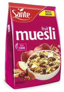 Злаковые хлопья 75 % [овсяные хлопья 30 %, хлопья ячменные, хлопья пшеничные (пшеница, неочищенный тростниковый сахар, морская соль, экстракт ячменного солода), кукурузные хлопья (кукуруза, неочищенный тростниковый сахар, морская соль, экстракт ячменного солода)], сухофрукты 25 % в разных пропорциях [финики (финики, рисовая мука), подслащенная клюква (клюква, тростниковый сахар, подсолнечное масло), яблоки].