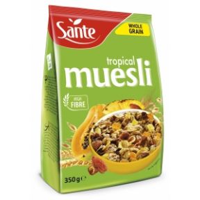 Злаковые хлопья 73 % [овсяные хлопья 32 %, хлопья ячменные, хлопья пшеничные (пшеница, неочищенный тростниковый сахар, морская соль, экстракт ячменного солода), кукурузные хлопья (кукуруза, неочищенный тростниковый сахар, морская соль, экстракт ячменного солода)], смесь фруктов 16 % в разных пропорциях [сухие финики (финики, рисовая мука), засахаренный ананас (тростниковый сахар, ананас, регулятор кислотности: лимонная кислота), цукаты из папайи (тростниковый сахар, папайя, регулятор кислотности: лимонная кислота)], мука: ячменная, кукурузная; глюкозный сироп, неочищенный тростниковый сахар, негидрогенизированный пальмовый жир, кукурузные зерна, тростниковая патока, кокосовые хлопья, морская соль, экстракт ячменного солода, корица, ароматизатор.
